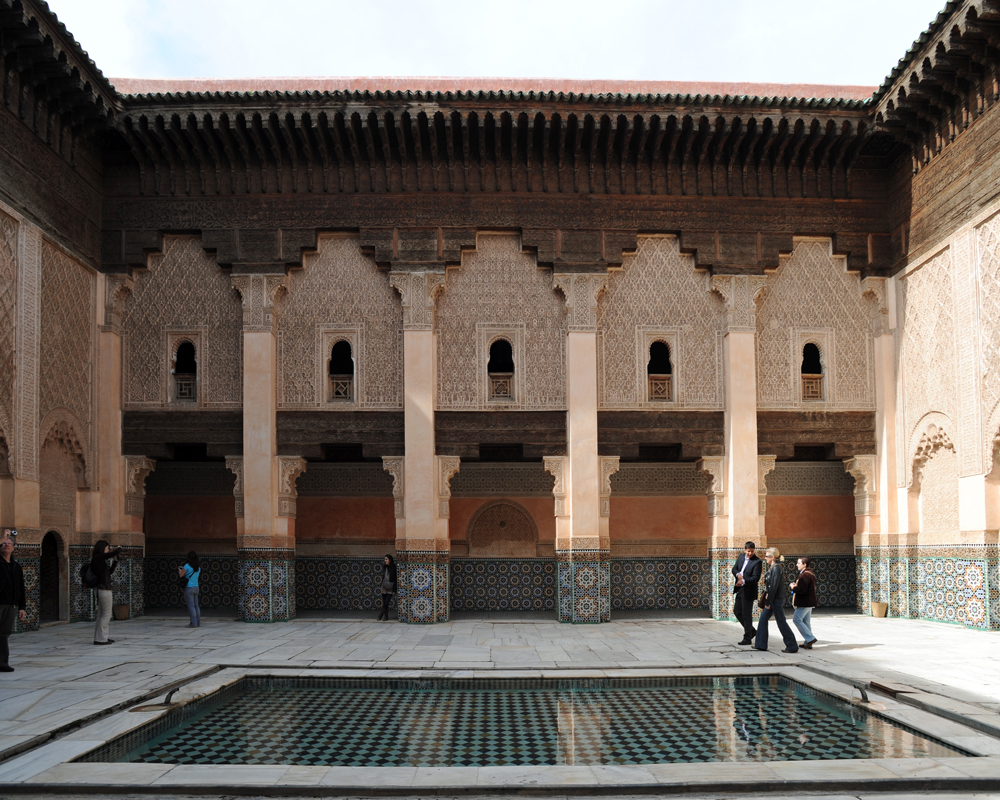 - Enjoy a guided city tour to Explore dramatically the first imperial city of Morocco, Fes; this UNESCO World Heritage Site was founded in the 9th century, and is home to the world's oldest university. The first stop of the morning is a visit to the entrance of the largest royal palace in Morocco. We will also visit the medieval Medina with its Medersas (religious Islamic universities) Attarine and Bou Anania, the Nejjarine fountain, the Moulay Idriss mausoleum, and the Karaouine Mosque University. Enjoy a Moroccan lunch at a traditional restaurant in the Medina. Afterwards, continue to explore the medina and Its narrow alleys house hundreds of merchants and craftsmen selling a range of products such as dates, fish, spices, copper urns and musical instruments. Night with breakfast at the Riad/Hotel.