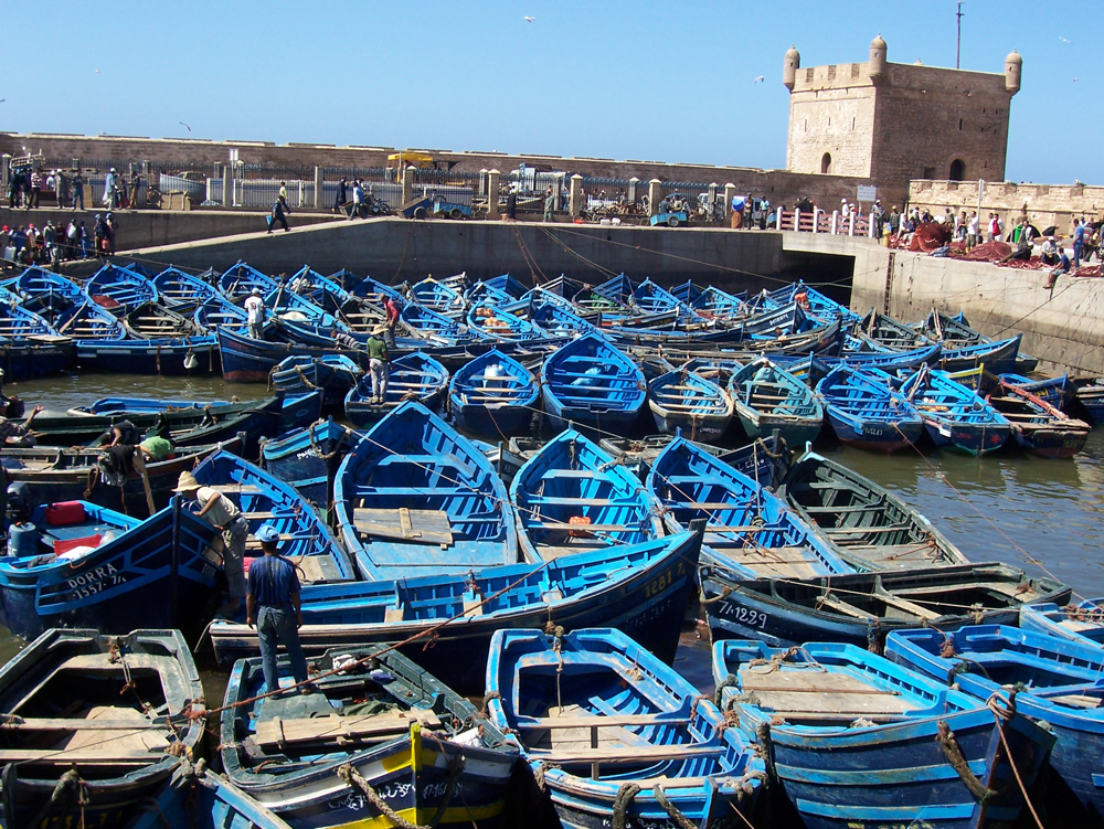 - After breakfast we’ll head for Essaouira. En route, you will see many Argan trees, important to the region both economically and ecologically. You may also see local goats perched in the trees feeding on the fruit and leaves. At the women's Co-operative of Argan Oil, there will be an opportunity to learn about the wide ranging applications of the oil from cosmetics to medicines. After several stops to take photographs, you will continue your travel to Essaouira. You’ll visit the Skala Fortress, the port, the souks and see Thuya wood carved by artisans, walking through the alleys of the medina and past the hundreds of handicrafts. Today you will have lunch in a Moroccan way, bought fishes ‘cooked to order’. The afternoon is free to walk and explore by yourself. Overnight accommodation with dinner at the Riad/Hotel.