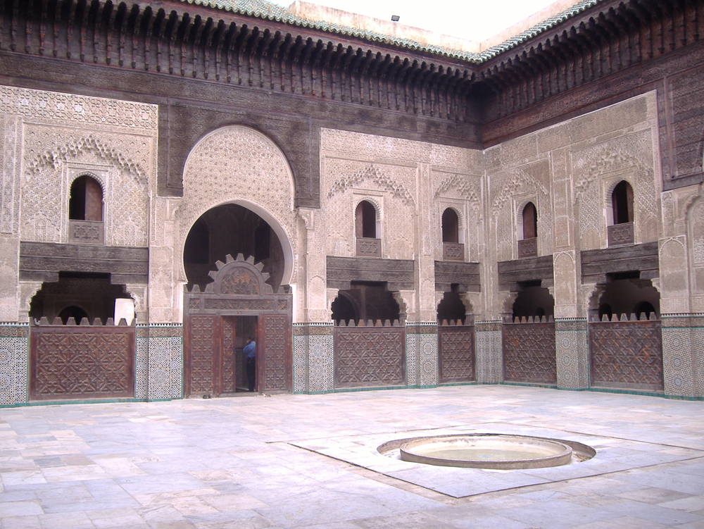 - After breakfast at the Riad, start exploring the world’s largest medina date back to the 9th century walking through its alleys and small streets. Our visit starts by visiting the Royal Palace gate, the Jewish headquarter named "Mellah" built in the 16th century. We explore the medina’s many artisans’ quarters, such as the brass, copper and wedding adornment souks. The carpenters, bakers & butchers also have their area of the medina that they call home. A highlight is a visit to the famous Fes tannery, where we have great views from a panoramic viewpoint over the men hard at work treating and dying the different hides. We’ll also get to see its religious and historical heart when we visit Moulay Idriss II’s Mausoleum (the founder of Fes), the 9th century Al Karaouine University and one of the many Medersas (Koranic school). Overnight in the Riad.